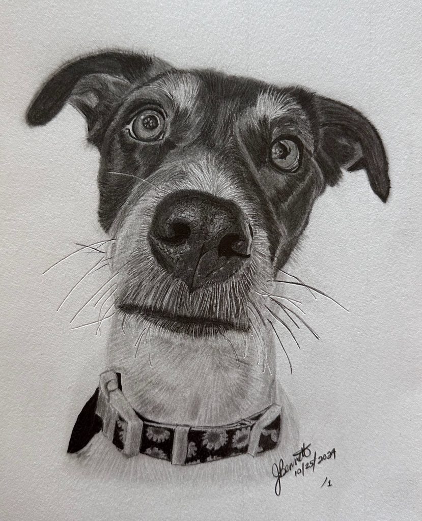 See the transformation of your digital photo into detailed graphite pencil drawing that will become something incredibly special in your life. Furbabies living forever in your favorite room!